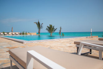 Located on the untouched shores of East Nungwi, Zanzibar, Oasis Blu Beach Resort is an oceanfront escape where modern design meets barefoot luxury. The resort features 17 rooms, each with a private pool overlooking turquoise waters and natural sandbanks. Its signature beachfront restaurant, The Sandbar, offers panoramic views and a versatile menu with lots of seating space. With a spa, gym, and water-sports equipment, Oasis Blu delivers a full resort experience infused with island serenity.
